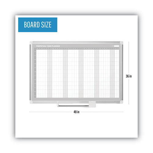 MasterVision Magnetic 12-Month Planner - Monthly - 12 Month - Silver Gray, White, Pale Gray - Aluminum, Lacquered Steel - 36" Height x 48" Width - Durable, Accessory Tray, Dry Erase Surface, Magnetic - 1 Each