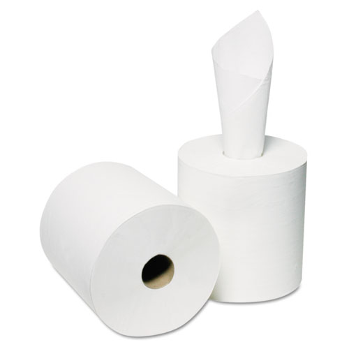 Two-ply, center-pull paper towel with perforated core for easy removal to start dispensing. Provides for one-handed touch-free dispensing and is a hygienic alternative to classic paper towel dispensers. Perforated sheets allow only the necessary amount to be used.