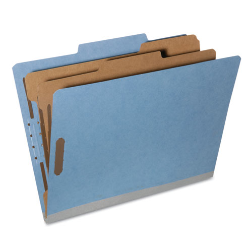 SKILCRAFT Tyvek Reinforced Classification Folder - 8 1/2" x 11" - 2" Expansion - 2" Fastener Capacity for Folder - 2 Divider(s) - Pressboard, Metal - Blue - 30% Recycled - 10 / Box