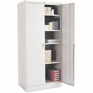 Commercial grade deluxe unassembled steel storage cabinet. Easy assembly with just a screwdriver, hammer and provided nut driver. Built with premium quality steel and reinforced doors for long-term performance at an attractive price. Two brushed chrome handles. Right handle uses three-point keyed locking to secure both doors. Storage cabinet is electrostatically painted with a tough, long lasting powder finish to ensure years of lasting beauty.
