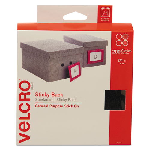 VELCRO® Sticky Back 3/4in Circles Black 200 ct - 0.75" Diameter - Black - For Sign, Poster, Wall, Plastic, Glass, Tile, School, Home - 200 / Carton